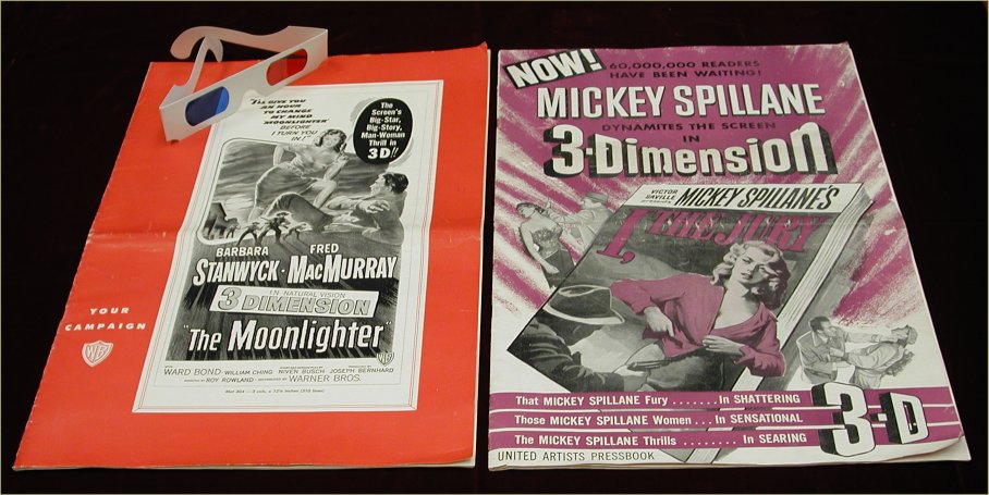 Three-dimensional film making had been tried in 1935 by MGM, but was scrapped when the throwaway paper glasses with one red and one green eyepiece proved too expensive and uncomfortable. The gimmick was revived in 1953, - with the glasses - in an effort to save the ailing film industry. BWANA DEVIL ("A LION IN YOUR LAP!") was the first major production in 3-D and was lambasted by critics and audiences in 1952. The first box office hit, using the process, was HOUSE OF WAX with Vincent Price (1953), offering an excellent script, better production values and a topnotch cast. The problem with most 3-D productions was the annoying habit of stopping the narrative action to hurl an object at the audience (For example: the paddle ball sequence in HOUSE OF WAX.) After the success of HOUSE OF WAX, all the studios began to make 3-D films (KISS ME KATE, DIAL M FOR MURDER, etc), but the novelty soon wore thin and most of these films were released "flat". The process had a mini-revival in the 1980s with COMIN'AT YA and JAWS 3-D.